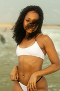 designed for the modern beach goddess who embraces both elegance and edge. This two-piece set is crafted in a crisp white that beautifully contrasts sun-kissed skin and brings a timeless, sophisticated feel to your swimwear collection.