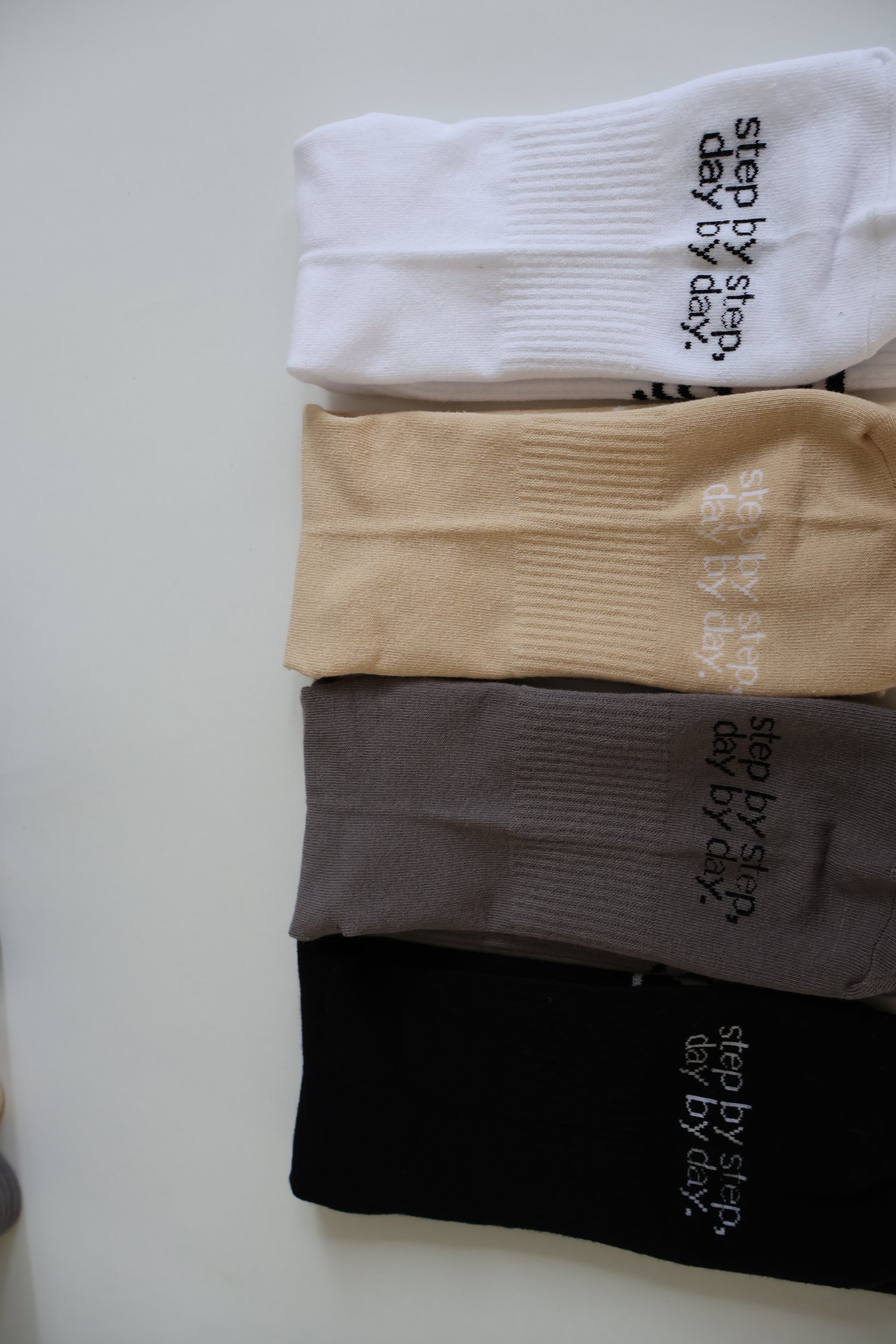 Gattyzactive premium training socks are crafted with the perfect blend of cotton and polyester to keep your feet feeling soft,dry and smooth through the day. Our jacquard mid-calf socks are breathable and comfortable providing you with outmost support while training.Detailed with a little motivational quote “Day by Day, Step by Step” around the foot, our logo-type and double border lines at the cuff for a stylish edge.