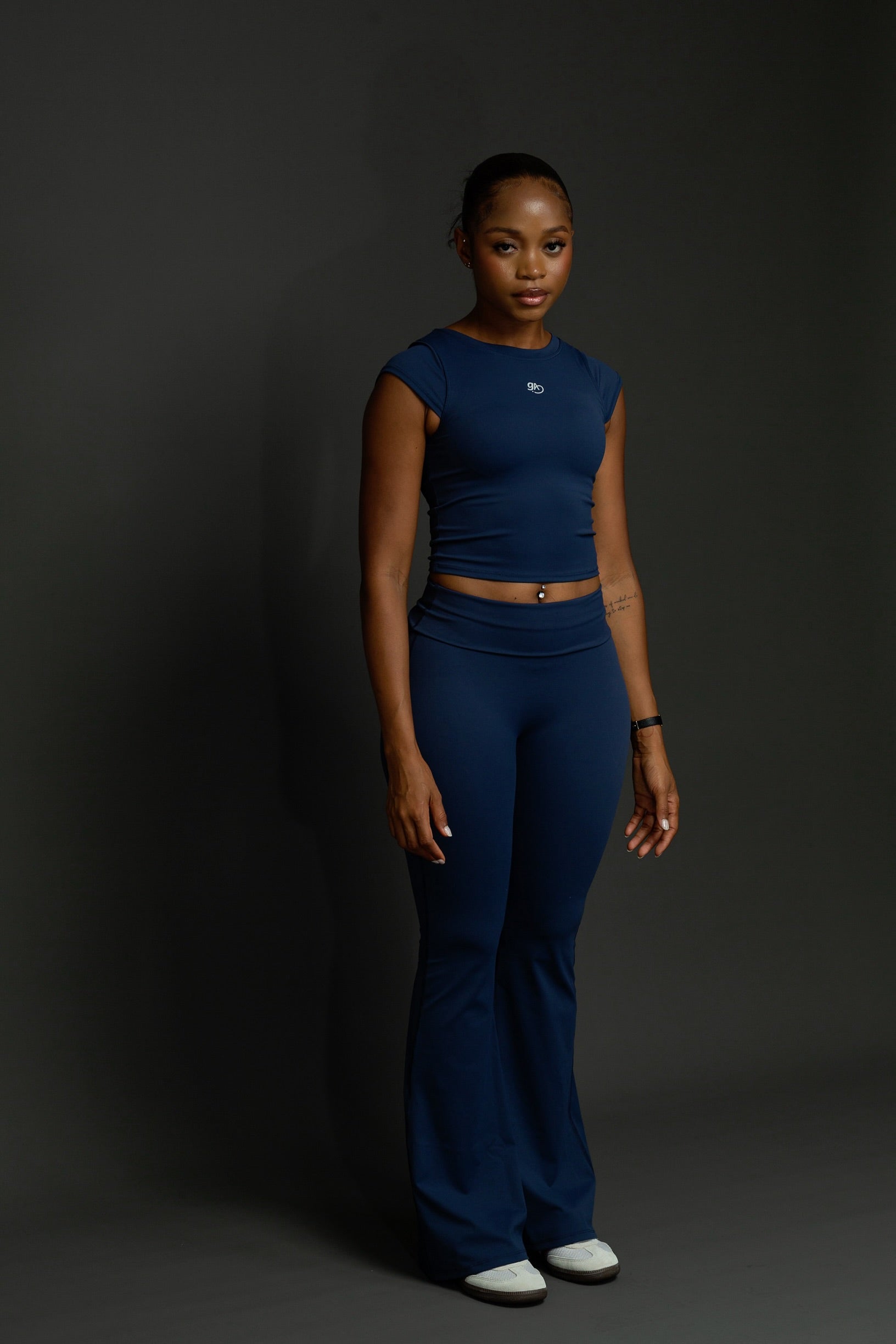 Crew neck cropped tees (navy)