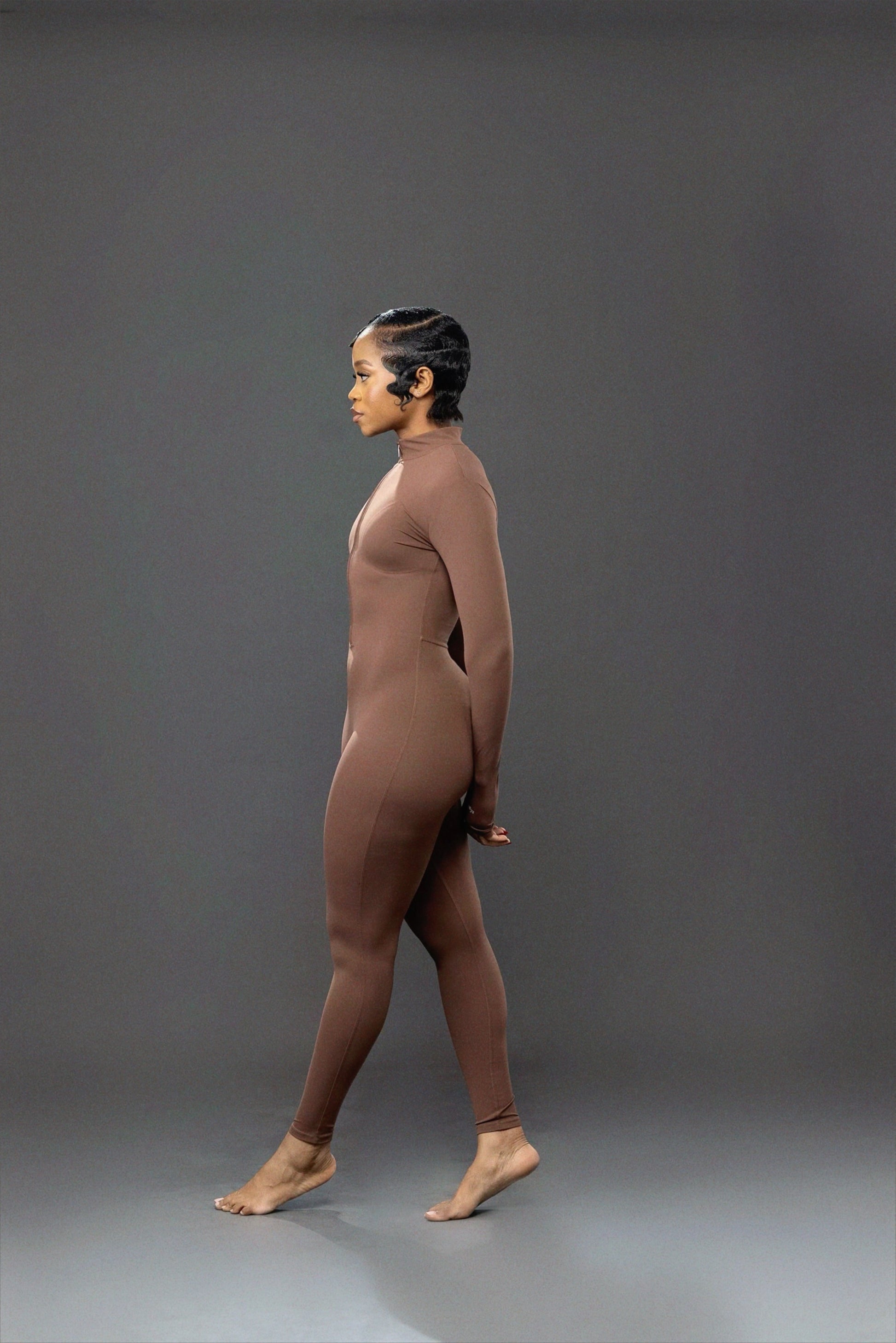 Flexy halfway zipper bodysuit (choco)