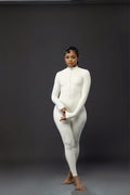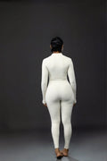 Elevate your wardrobe with our Seamless halfway zipper Jumpsuit. Designed for both style and performance, this one-piece athletic set is perfect for workouts, running, and gym sessions. Crafted from a premium blend of Nylon and Spandex, it offers exceptional stretch and comfort, allowing you to move freely during any activity. The seamless ribbed construction provides a sleek and flattering fit which also features a collar, while the long sleeves offer added coverage and protection. Featuring a convenient zipper closure, this jumpsuit is easy to put on and take off, making it ideal for quick wardrobe changes before and after your workouts. This long-sleeved jumpsuit is fit for gym training, and yoga, or even dress it up with a pair of heels for that epic boss babe look. Available in different colours as shown in the pictures, you can choose the perfect colour to suit your style. Whether you're hitting the gym or running.