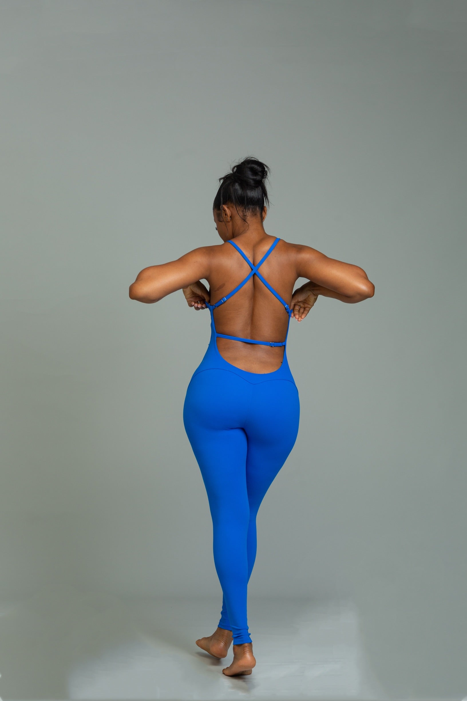 Grounded cross-back strappy bodysuit (electric blue)