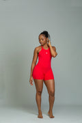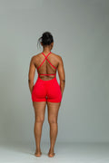 Grounded cross-back strappy romper (scarlet)