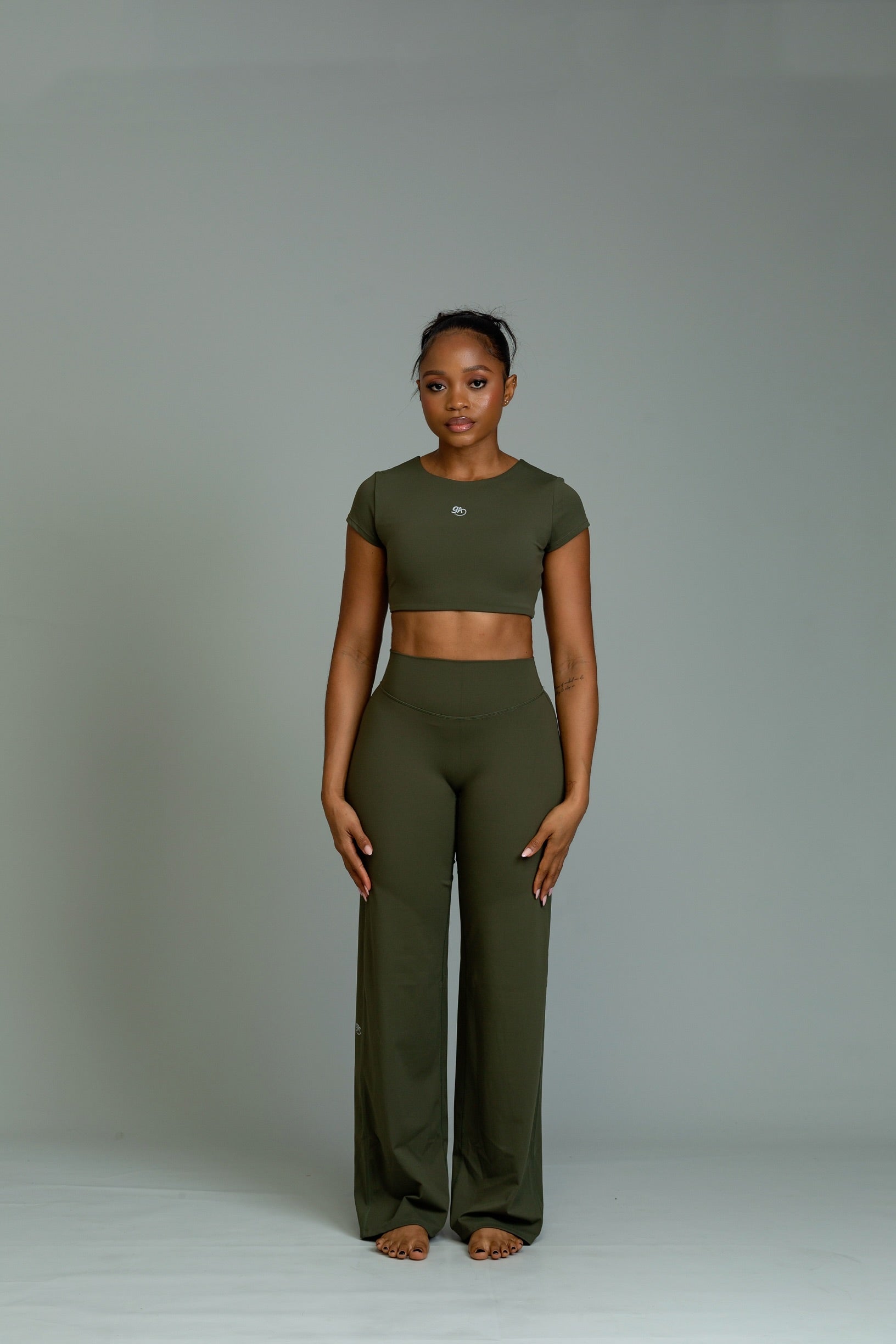 Open back cropped tees (olive)