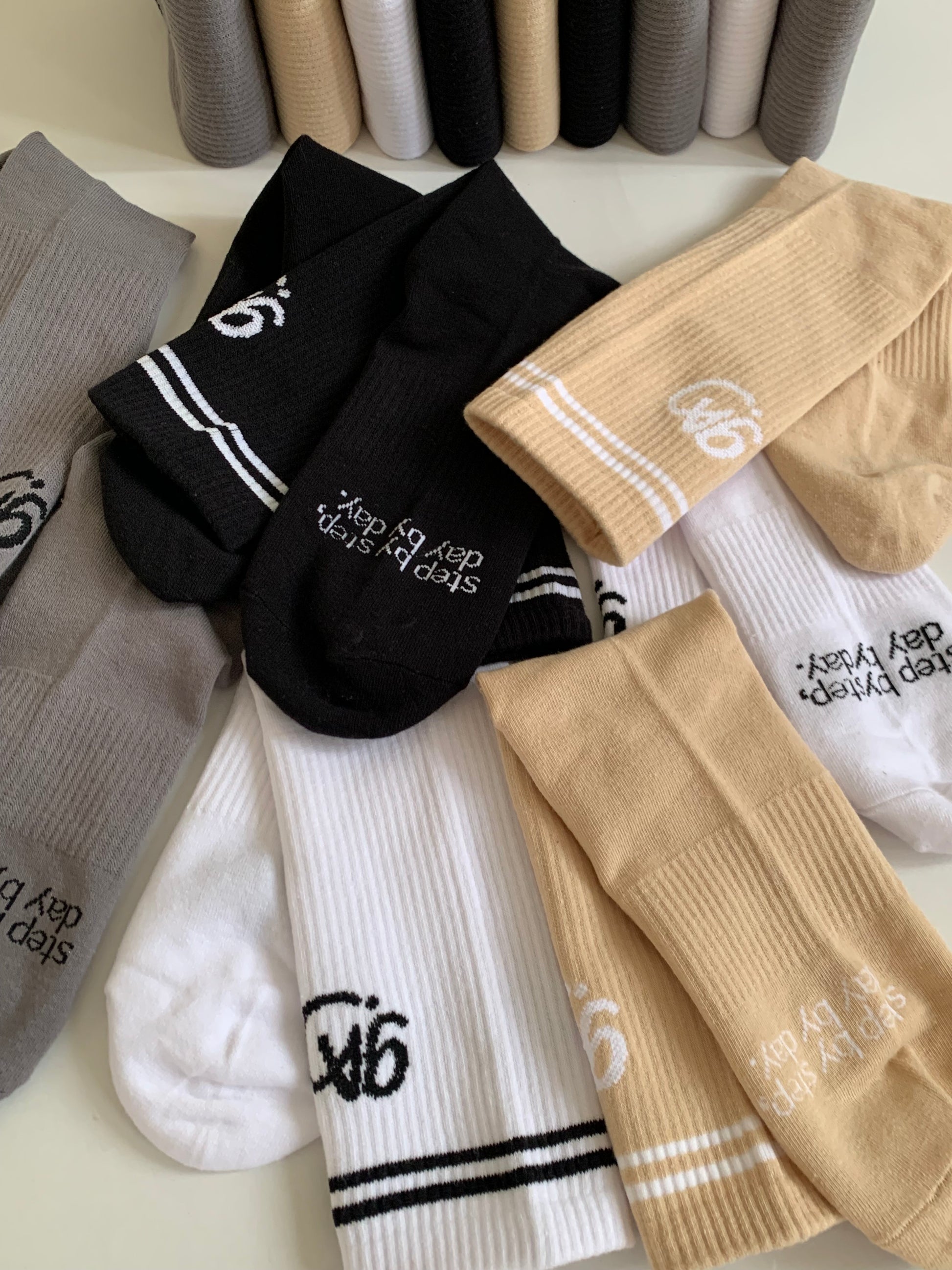 Gattyzactive premium training socks are crafted with the perfect blend of cotton and polyester to keep your feet feeling soft,dry and smooth through the day. Our jacquard mid-calf socks are breathable and comfortable providing you with outmost support while training.Detailed with a little motivational quote “Day by Day, Step by Step” around the foot, our logo-type and double border lines at the cuff for a stylish edge.